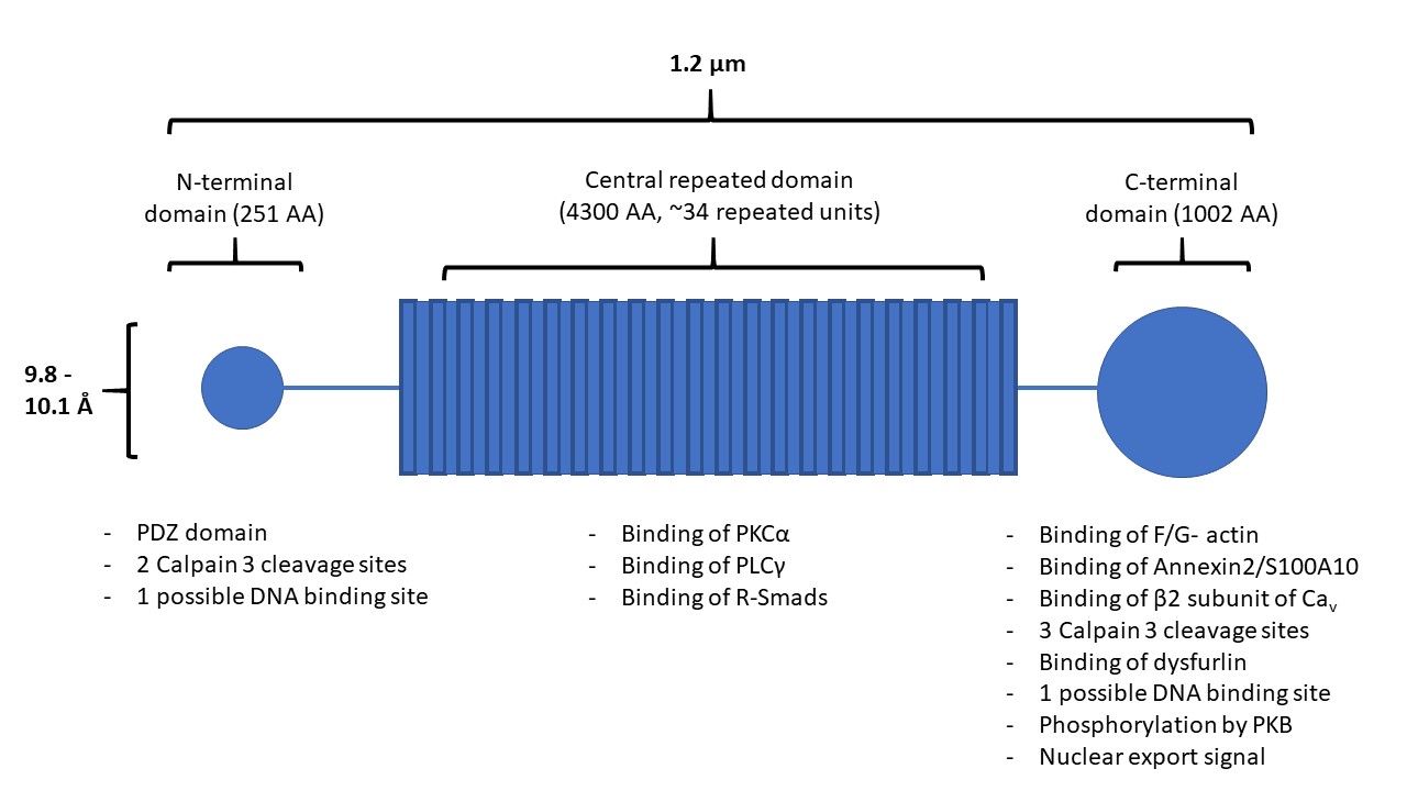 A visual representation of AHNAK and its many sites of protein interaction.
