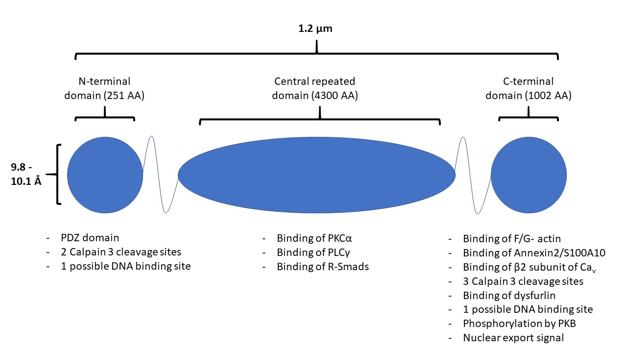 Figure 1. A structural representation of the AHNAK protein, including the sites of possible interactions. Modified from [1].