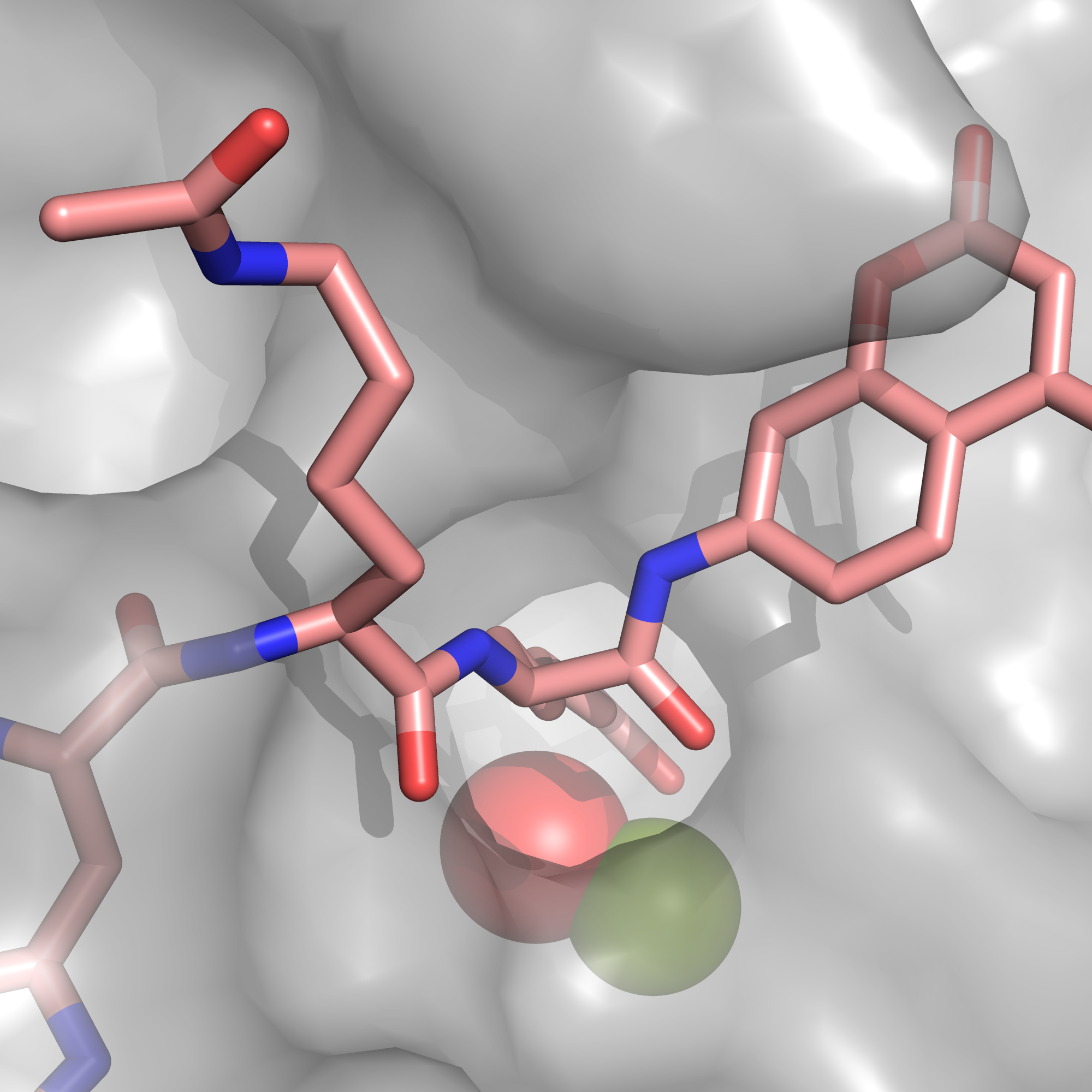 17:42, 22 March 2019 | Carolyn Hurdle (Talk | contribs) | 2000×2000 | 1.31 MB | A view inside of the binding pocket of HDAC8, showing the lysine that will be deacetylated. |