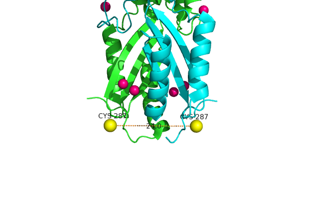Labeled Cysteine resides measured with FRET showed the distance of the CTD of each monomer to be 24.0Å when saturated with Zn2+.