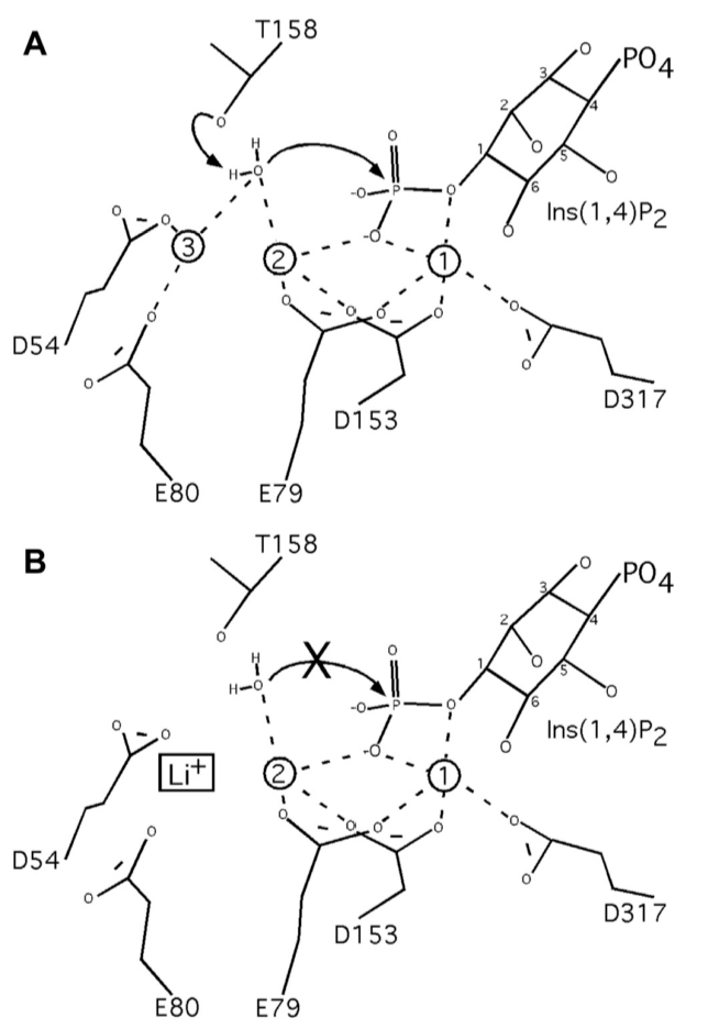 The process of dephosphorylation and how lithium can inhibit it