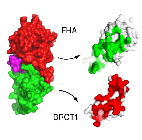 Interface interactions of FHA and BRCT1 domains in spNbs1 (Lloyd et al, 2009).