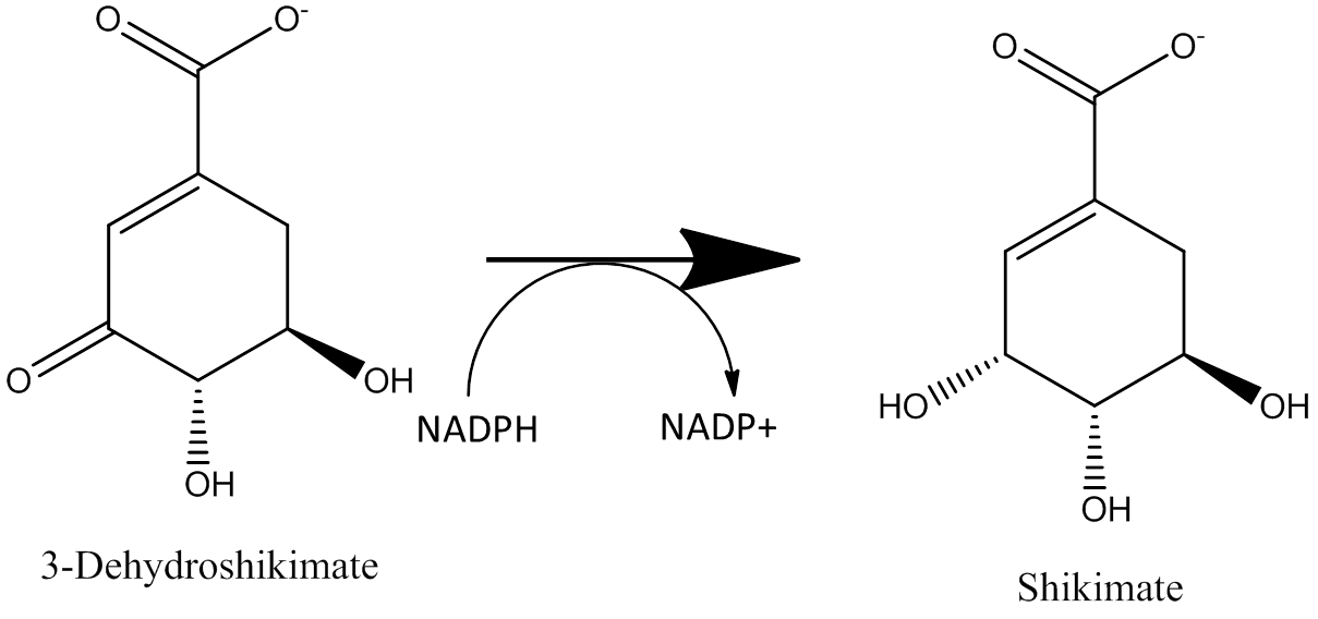 Shikimate Dehydrogenase aids in the transfer of a hydrogen from NADPH