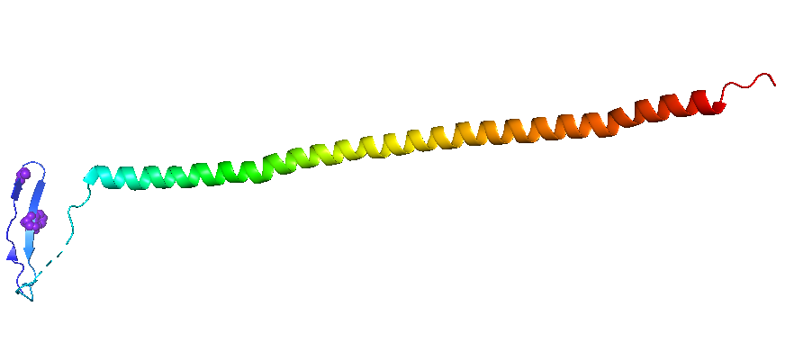 stathmin from 4eb6 shown highlighting the mutations made to the protein as purple spheres.
