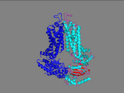 These two domains contain the active site of this transporter protein. The interest in this protein is in its involvement with mutidrug resistant cancer cells. This involvement is due to its active site's promiscuity as many xenobiotics have been found to transported to the outside of the cell by this transporter.