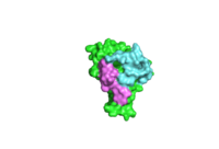 [[Image:Binding.png|200 px|thumb|Fig. 1 The overlap structure of CLOCK:BMAL1 complex with bHLH Myc:Max-DNA complex (pdb: 1NKP). The figure is generated by Pymol]]