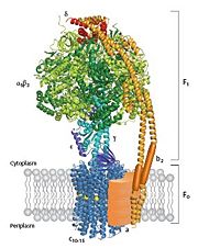 | - | The first atomic-level(2.8Å) resolution structures by '''<FONT COLOR="#F87217">X-ray</FONT>''', strucutures was of bovine mitochondrial F<sub>1</sub> in 1994. The α and β subunits each had similiar three-domain structure, with an N-terminal β-barrel furthest away from the membrane surface, a central nucleotide-binding domain, and a C-terminal helical domain. Also, an '''<FONT COLOR="#571B7e">NMR</FONT>''' structure of isolated ''E. coli'' ε subunit is in good agreement with X-ray structure. The structure of the N-terminal domain of ''E. coli'' δ subunit consisting of residues 1 through 134 was solved also by NMR | + | The first atomic-level(2.8Å) resolution structures by '''<FONT COLOR="#F87217">X-ray</FONT>''', strucutures was of bovine mitochondrial F<sub>1</sub> in 1994. The α and β subunits each had similiar three-domain structure, with an N-terminal β-barrel furthest away from the membrane surface, a central nucleotide-binding domain, and a C-terminal helical domain. Also, an '''<FONT COLOR="#571B7e">NMR</FONT>''' structure of isolated ''E. coli'' ε subunit is in good agreement with X-ray structure. The structure of the N-terminal domain of ''E. coli'' δ subunit consisting of residues 1 through 134 was solved also by NMR <ref name="MM"/>. In addition, according to analyses by SDS-polyacrylamide gel electrophoresis '''<FONT COLOR="#E42217"> (SDS-PAGE) </FONT>''', high-performance liquid chromatography'''<FONT COLOR="#F535AA">(HPLC)</FONT>''' analysis, and NH<sub>2</sub>-terminal sequencing, the purified complex used here for crystallization consists of subunis α, β, γ, δ, ε, b, d, a, h, f, ATP8, and c(in diminishing apparent molecular weight order for F<sub>1</sub> and F<sub>0</sub> on SDS gels) and is similar to other preparations. |
