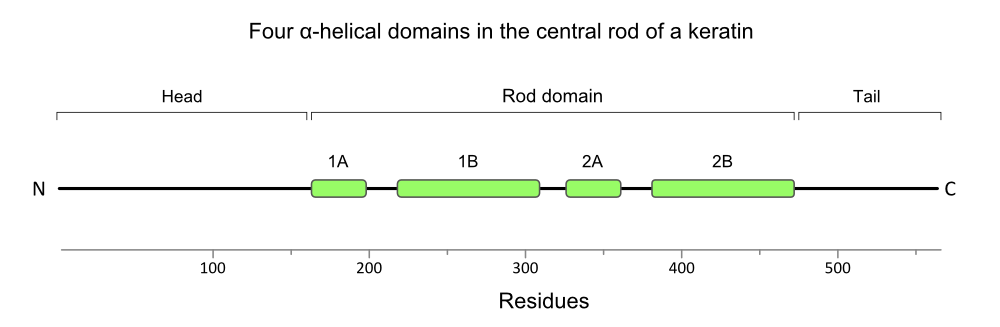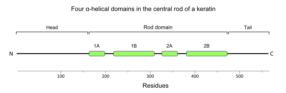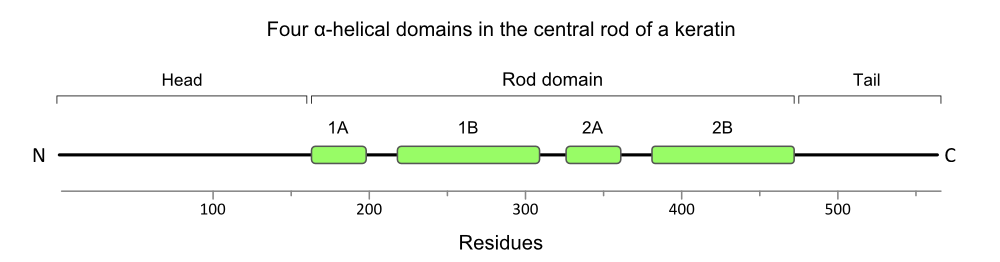 (uploaded a new version of "Image:Keratin-secondary-structure-1000px.png": Helical domains in keratin) |