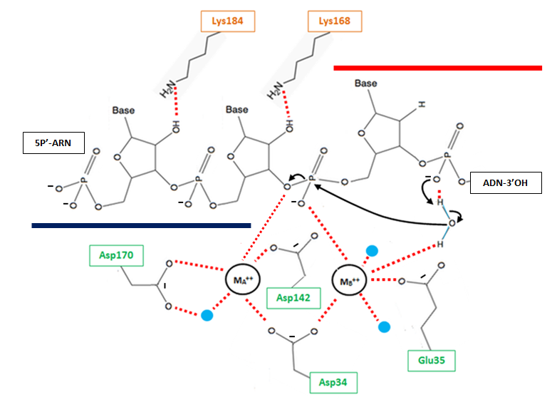 (current) | 15:55, 8 January 2015 | Valeriane Keita (Talk | contribs) | 782×578 | 100 KB | Figure 2 : Proposed mechanism for Okazaki fragment processing (not a concerted mechanism). In green = Catalytic amino acids. In orange = Recognition amio acids. The RNA part of the hybrid is indicated by a blue line and the DNA part by a red line. Blue |