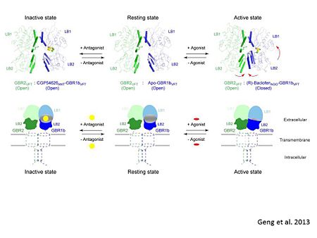 - ↑ Geng Y, Bush M, Mosyak L, Wang F, Fan QR. Structural mechanism of ligand activation in human GABA(B) receptor. Nature. 2013 Dec 12;504(7479):254-9. doi: 10.1038/nature12725. Epub 2013 Dec 4. PMID:24305054 doi:http://dx.doi.org/10.1038/nature12725