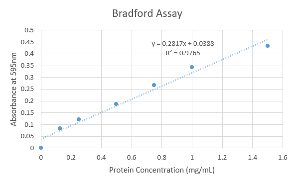 (current) | 00:48, 13 April 2021 | Sophie Burke (Talk | contribs) | 596×371 | 17 KB | Graph of standard curve from Bradford Assay run with 3HDT |