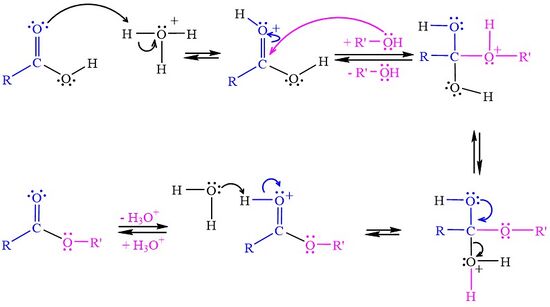 <StructureSection load='' size='350' side='right' caption='Esterification of fatty acid with ethanol' scene='88/887592/Esterification_with_fifth_step/1'> | <StructureSection load='' size='350' side='right' caption='Esterification of fatty acid with ethanol' scene='88/887592/Esterification_with_fifth_step/1'> | ||