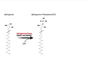 | + | [[Image:Sphingosine to S1P.jpeg|300px|left|thumb|]] | ||