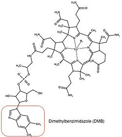 Co(III)alamin: Cobalt in +3 oxidation state occurs when His 759 replaces the dimethylbenzimidazole (DMB) ligand to allow for the methyl to be accepted by Cob(I)alamin, forming Me-Cob(III)alamin.