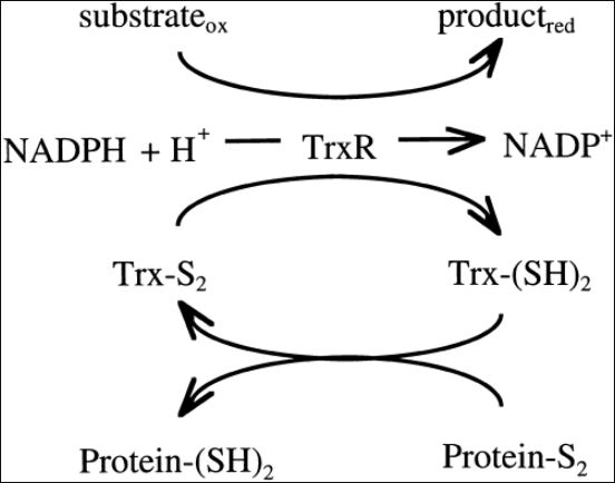 (Scheme of oxidoreductase activities of the thioredoxin system. Arnér et. al, 2001.)