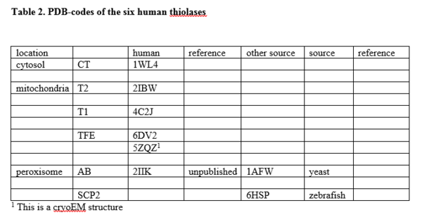 characterized. For most of these thiolases the structures are known (Table 2). Each of them important in different pathways, and in