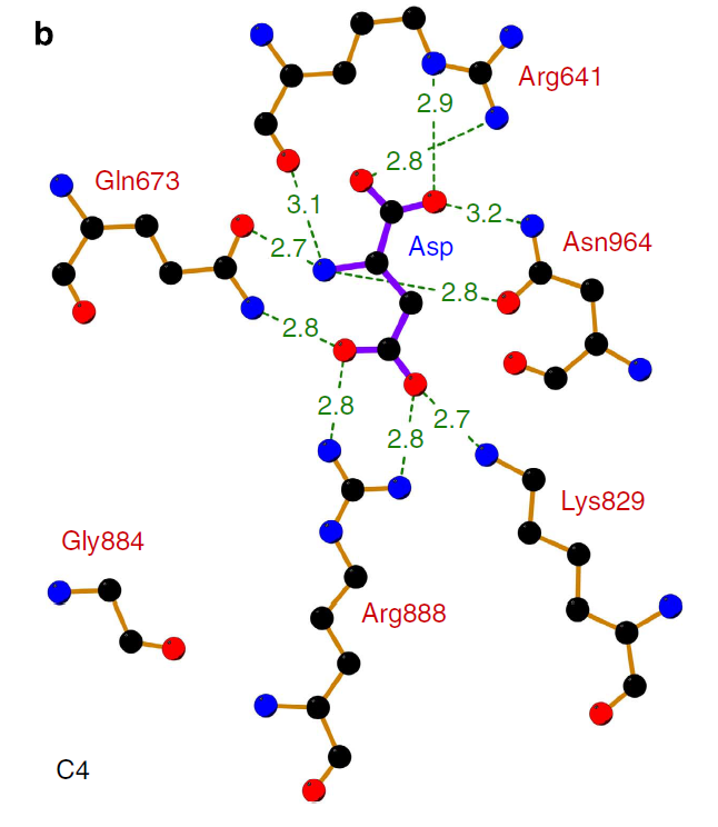 Inhibitor-binding site of Flaverina trinervia’s C4 PEPC. Adapted from Paulus JK, Schlieper D, Groth G. Greater efficiency of photosynthetic carbon fixation due to single amino-acid substitution. Nat Commun. 2013 Feb 26;4:1518. doi: 10.1038/ncomms2504. PMID:23443546 doi:http://dx.doi.org/10.1038/ncomms2504